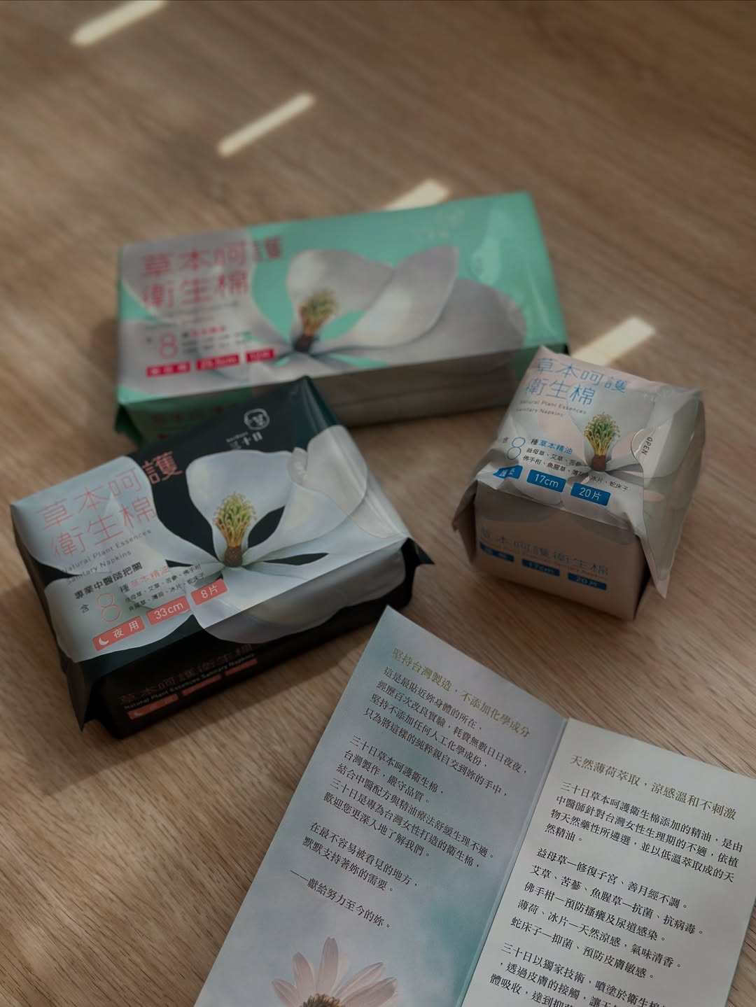 台灣三十草本衛生棉和別的一班衛生棉不一樣是他加入了「 草本 」